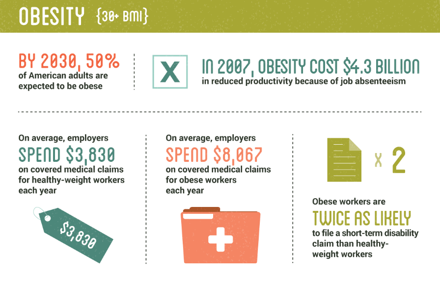 And obese workers are twice as likely to file short-term disability claims.