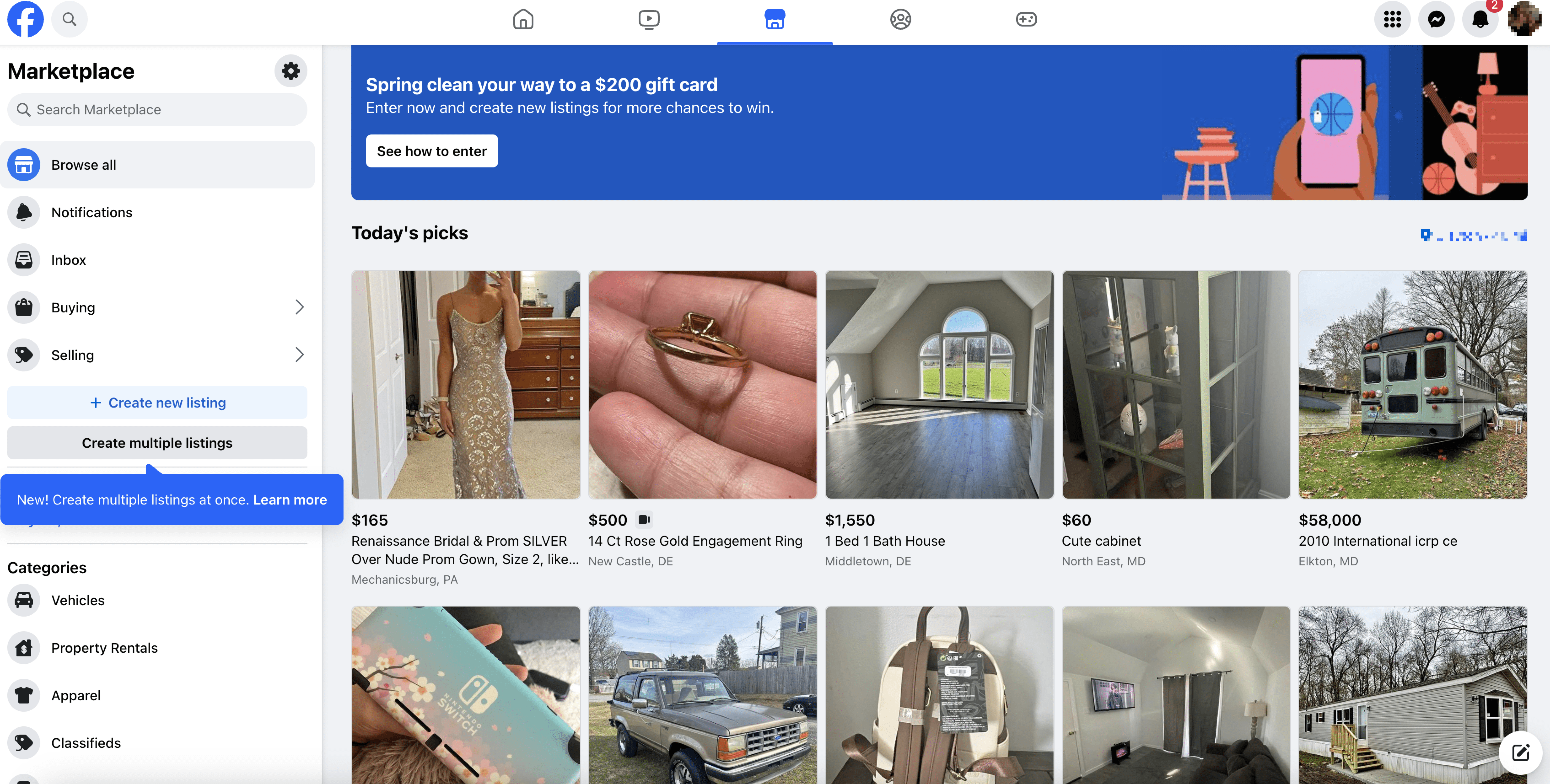 Facebook Marketplace is one of the best places to sell online because it exposes you to its 3 billion monthly active users. It’s also a popular choice for ecommerce businesses because Facebook has partnerships with platforms like Shopify to help merchants list and manage their products on the platform.