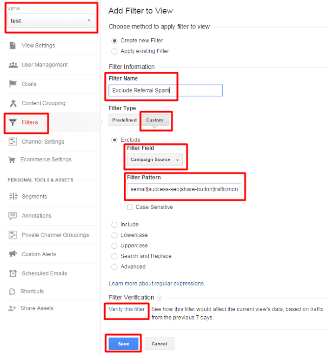 Additionally, there is a limit on the number of filters you can have. Once applied, filtered results can take up to 24 hours to become visible. Spam referral are constantly coming and going, so you’ll need to monitor for new ones to add and old ones you can remove.