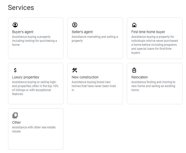 When you click on their ad, you can see they have all their services listed, so the searcher can determine if this real estate agency is a good fit for their needs.