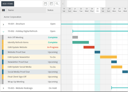 - Organized calendar that shows an overview of each project