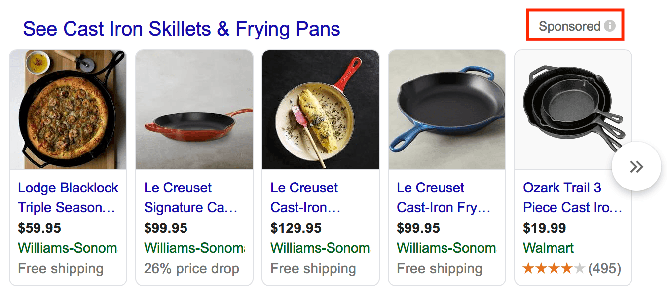 Google shopping ads are another type of paid advertising your business can utilize to help leads find your products. These ads appear in a carousel format above the main Google search results. It allows users to see the products and prices before they click on someone’s website.
