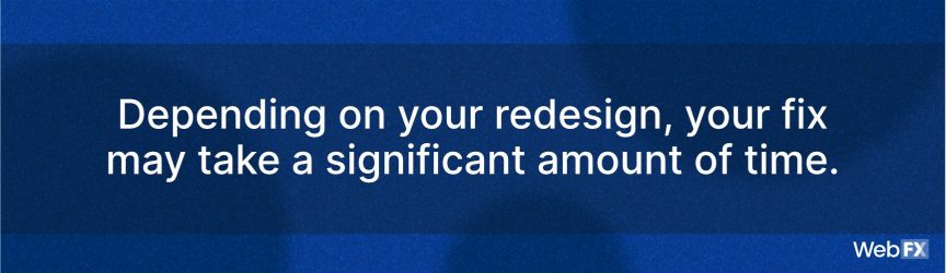 Solution: If you’re working with a website design agency, find a partner that also offers SEO. Alternatively, you can ask during the sales process if they work with an SEO partner during their projects. Keep in mind that if they work with an SEO partner vs. in-house SEO, your website redesign fees may be higher since you’re technically paying for the expertise of both agencies.