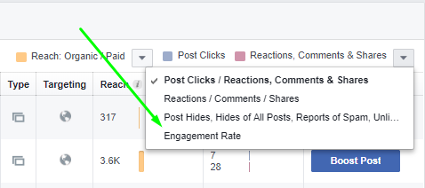 Go to your Post Insights and toggle the engagement column to show the engagement rate.
