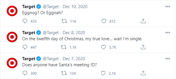 For example, Target takes a fun and casual approach to their social media. In the photo below, they shared a photo someone else took of a mannequin in their store falling apart and captioned it “last Monday in 2020 feels like:”