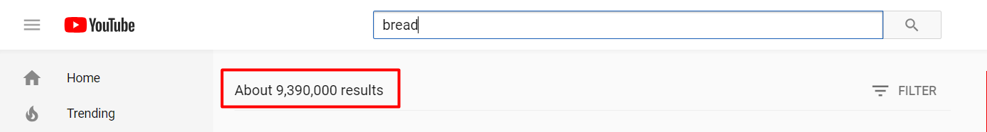 This generates results with over 9 million videos. If you tried to rank for that keyword, your video would get lost in the sea of 9 million other videos about bread! Not to mention, “bread” is a generic term that doesn’t specify what a user wants.