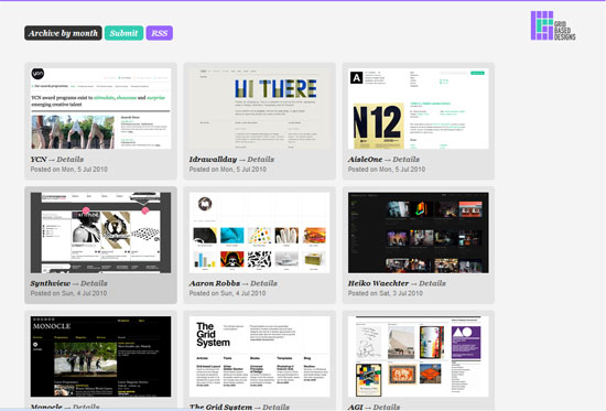 Using grid layouts gives your designs a sense of order through systematic placement and alignment of design elements. Grid-Based is a niche web design gallery that showcases beautiful sites that employ grid systems (of course, presented to you as thumbnails aligned on a grid).