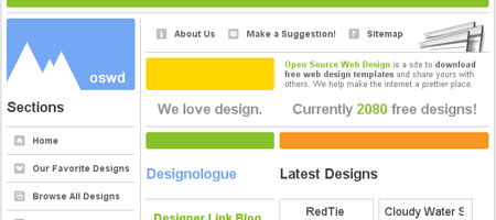 Open Source Web Design is a community where users upload designs to share to the public. Downloading an OSWD design is free of charge. You can either browse their gallery of designs or download them to study.