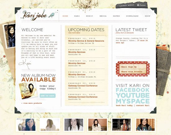 Cufon is also used here to add a unique look to the site through typography. Color, different sizes, and a fun asymmetrical layout create a great typographical design.
