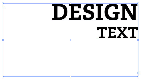 Click on your Type Tool (T), click and drag a box on the artboard for your text, then type out “DESIGN TEXT” in two lines. This will give us the shape we are looking for. You can adjust the size of the text by opening up the Character Panel (Window > Type > Character or press Ctrl/Cmd + T).