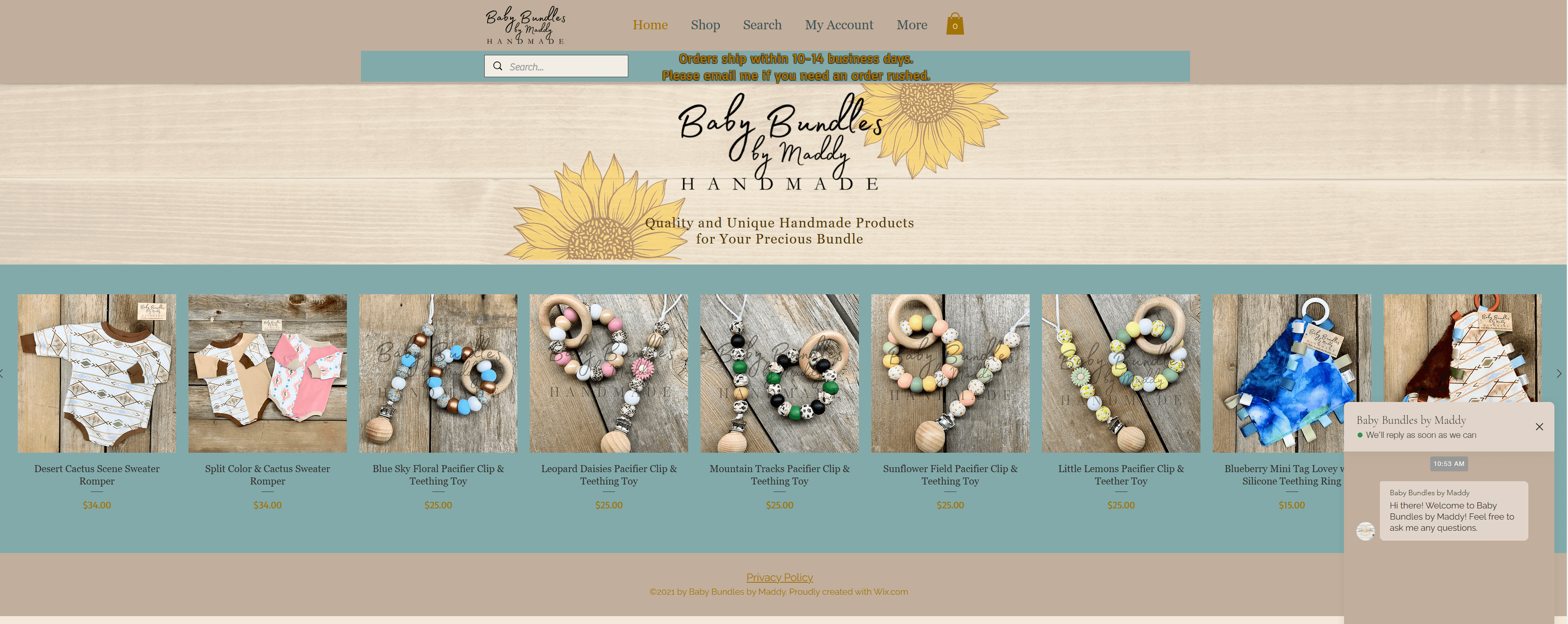 Baby bundles is another personal, individual website example, created by Maddy ,who is a mom. She has created and sells unique items specifically for babies, such as teeth toys and rompers.