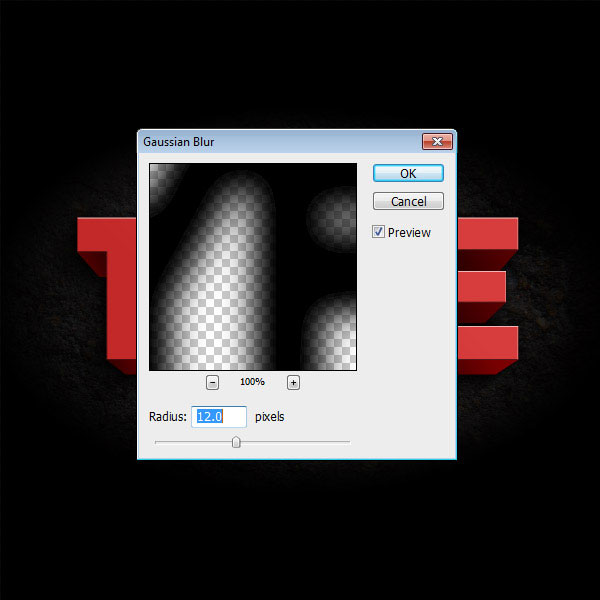 With the other black text layer, go to Filter > Blur > Gaussian Blur and adjust the Radius to 12.0.