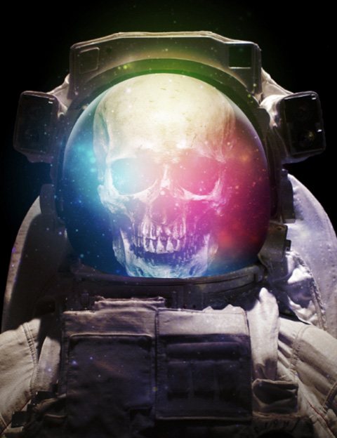 Move the gradient so that it’s coming from the top of the image and sort of centered on the skull and space helmet.