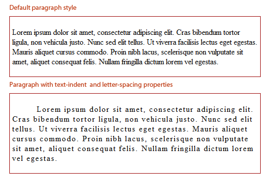 Below, you’ll see the p element given a text-indent and a letter-spacing property.