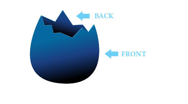 Place the light blue copy of the back eggshell shape and the light blue copy of the front eggshell shape behind each, and then move the blue copies slightly to the left. This creates a thicker edge.