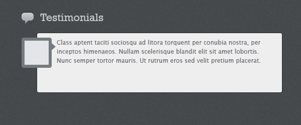 Copy the layer style from one of the icon layers that you used previously and paste it to this icon. Select the Type Tool (T) and write the word “Testimonials” next to the icon. I used the font Rockwell with the size 22pt and the color #c5cacd.