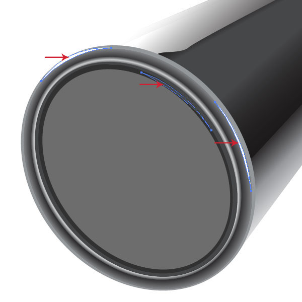 Draw another shape, filling it with a linear gradient. Place it over the rim.