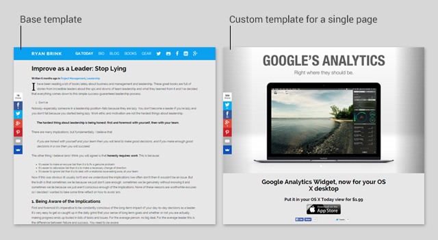Customization and templating of individual pages and posts is an area where Ghost really shines. Because it uses a simple but powerful templating system (i.e. Handlebars) you can quickly create a completely distinct look-and-feel for a page without affecting other pages.