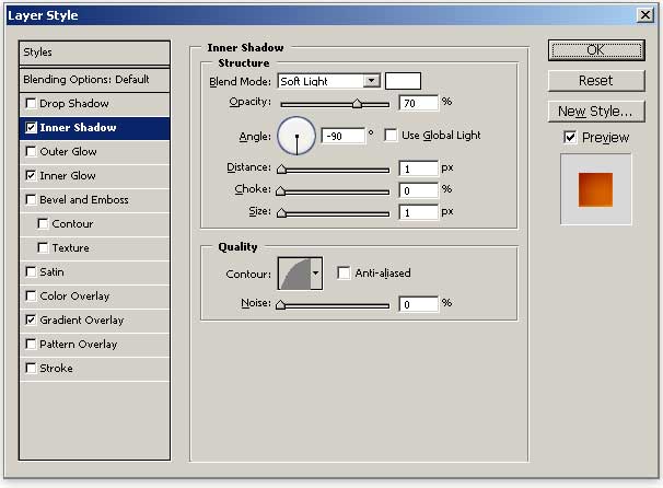 Give it a Gradient Overlay and Inner Shadow as we have done in the previous steps to color the top of the footstep.