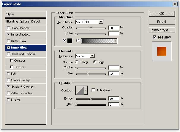 Also, give the window shape layer an Inner Shadow and Inner Glow to give it the depth that we need.