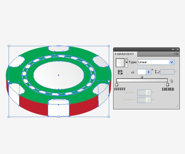 We all know how poker chips are very colorful, so let’s play with gradients to make our poker chip come to life. Select all the white objects and add a white-to-gray linear gradient using the Gradient Panel.
