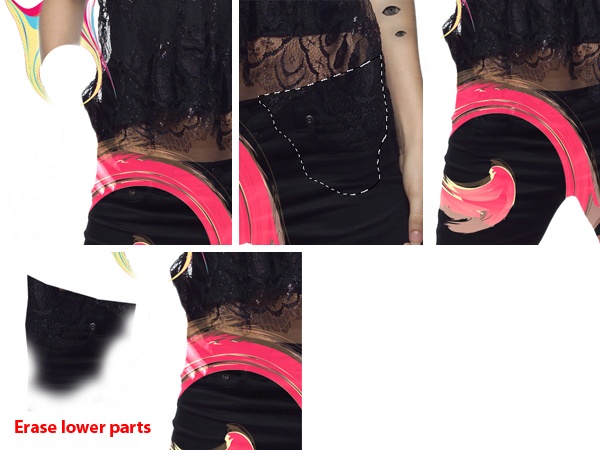Select the edges of the pants with the Lasso Tool (L) and delete the selected area.