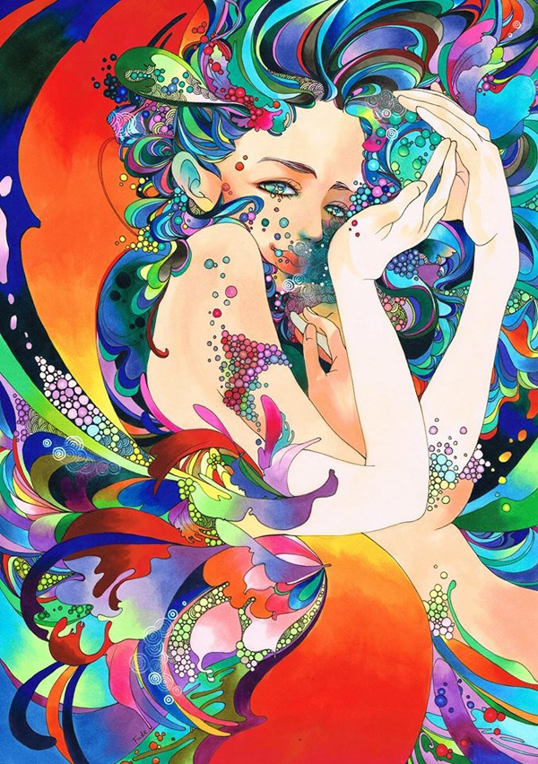 It takes a good amount of confidence and skill to work with art markers in order to achieve results such as those produced by Fudearashi. Judging by Fudearashi’s illustrations, she’s got those qualities and then some. She masterfully blends colors and creates color gradients that are impossible to replicate digitally making her work truly unique and a pleasure to behold.