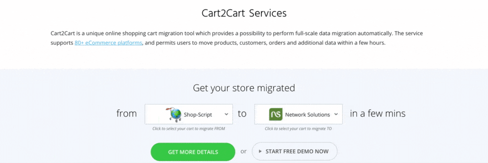 If you want to know how to create a service page, look at Cart2Cart for inspiration. Cart2Cart draws users in immediately with their moving selection feature.