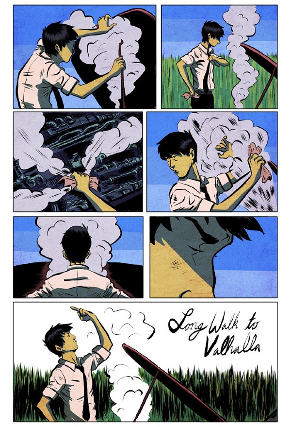 We made a short, 8-page sci-fi one-shot called “Mule,” that’s on our website. We ended up self-publishing it and going to STAPLE!, the indie comic con in Austin. After that, we started “Long Walk to Valhalla,” and that’s what we’re working on now.