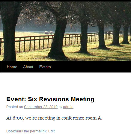 posts or pages), then you can do the same thing, but only you’d need to do it in single.php. When we visited an event, it looked like this: