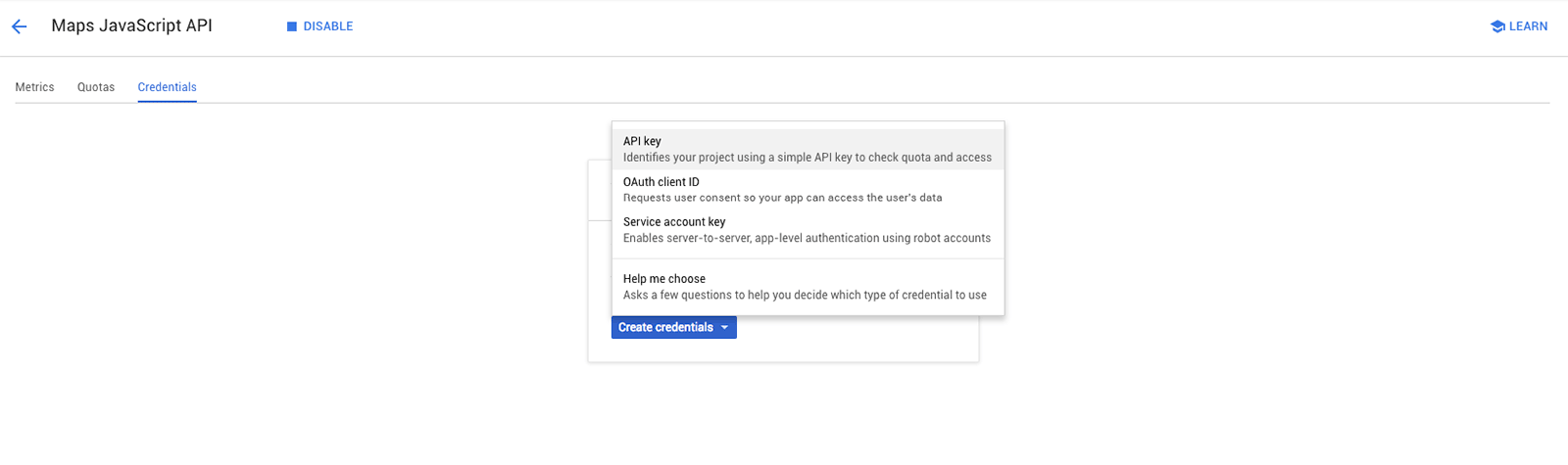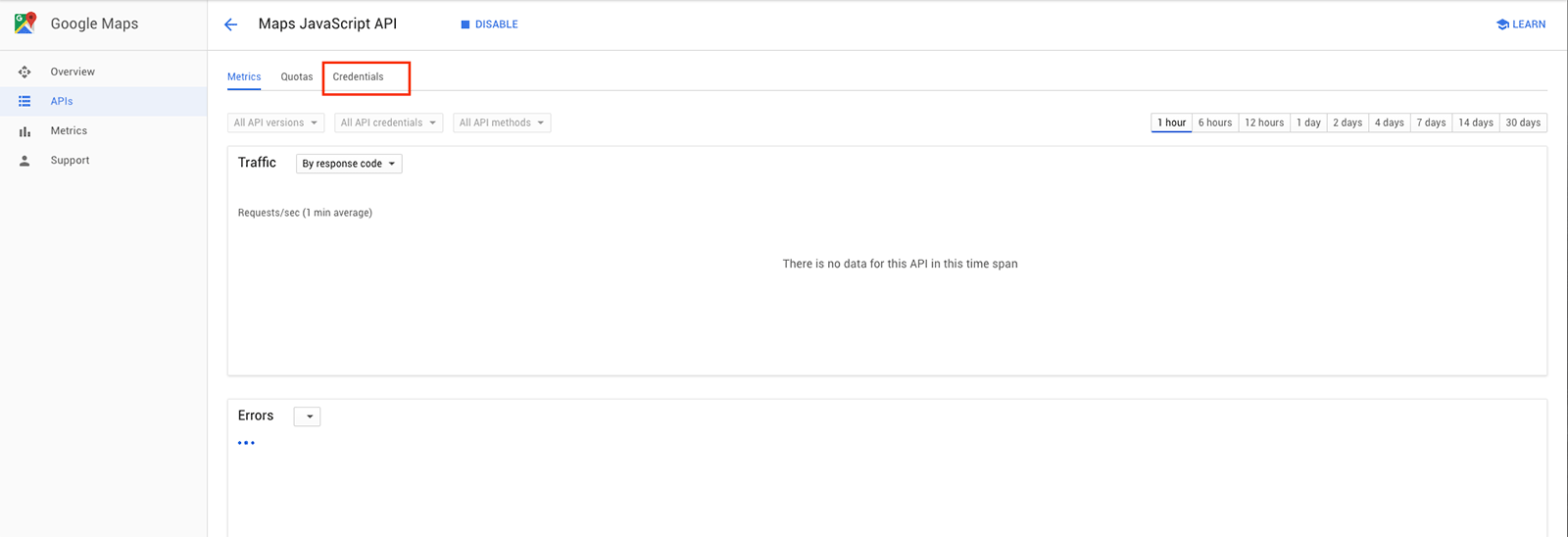9. When "Enabling API" finishes, click the "Credentials" tab