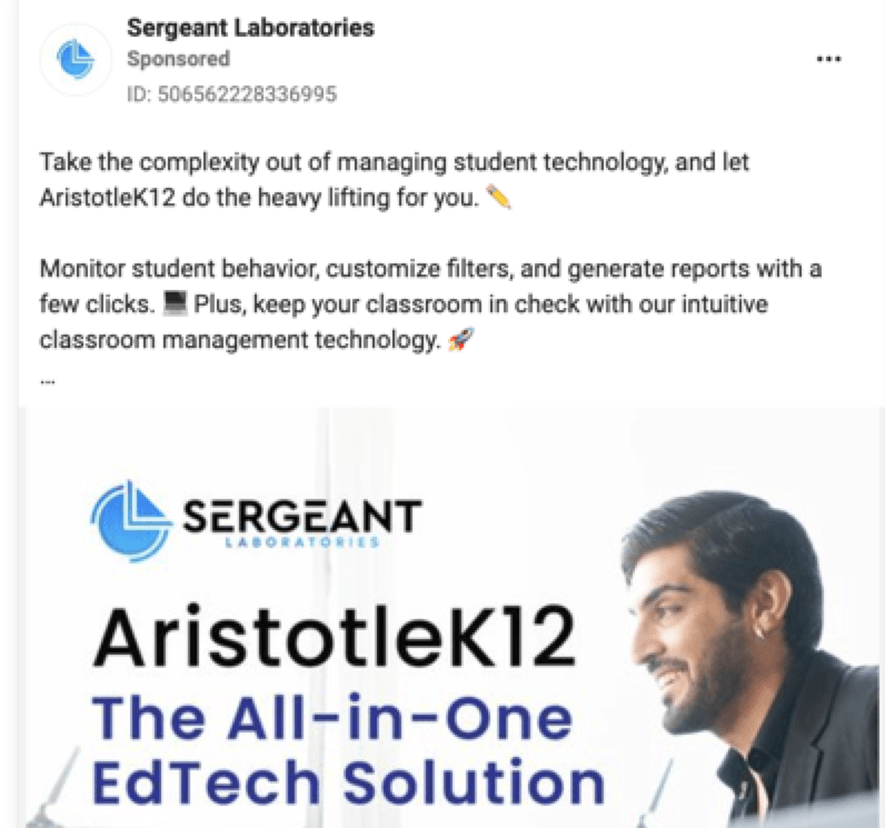 On a social channel, ads can blend right in with the user’s feed. Here is an example PPC EdTech ad from Facebook: