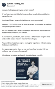 Depending on your audience, you might choose to target social media users. Here is what a loan officer social media ad looks like: