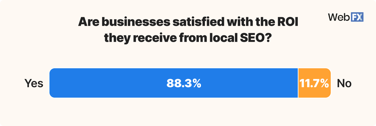 • Is local SEO worth the investment? Yes! 88% of businesses report satisfaction with ROI, and effective local SEO can improve rankings, foot traffic, and website traffic.