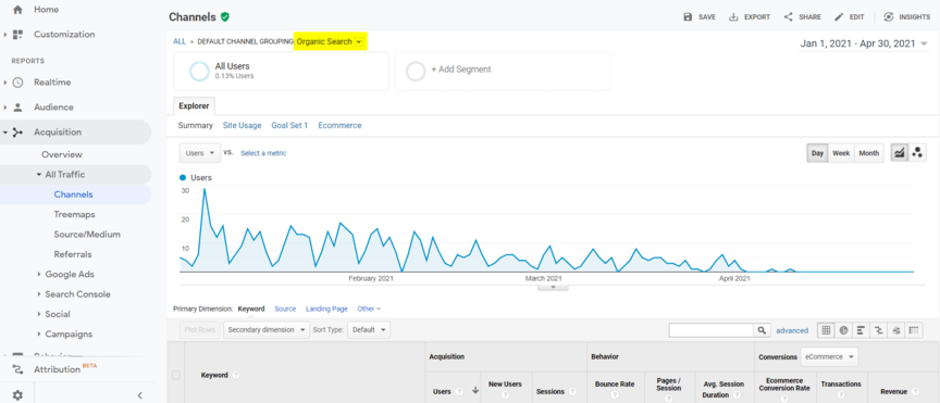 Next, you’ll need to filter your conversions by channel to see which ones came from SEO.