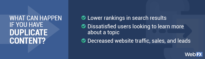 If you need help eliminating duplicate content on your site, or if you aren’t sure how to check for it, WebFX can help!
