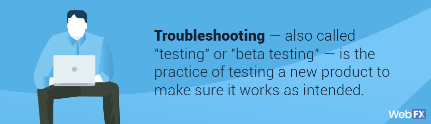 Troubleshooting — also called “testing” or “beta testing” — is the practice of testing a new product to make sure it works as intended.